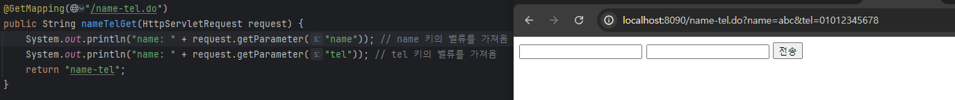 System.out.println("tel: " + request.getParameter("tel")); // tel 키의 벨류를 가져옴