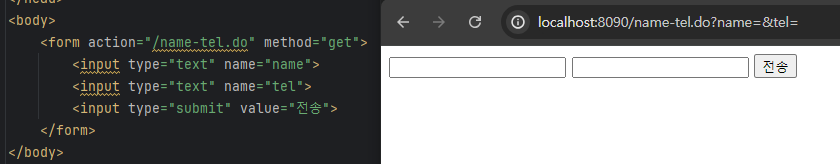 (name-tel.jsp의 폼은 확인을 위해 get 방식으로 바꿔주었다)