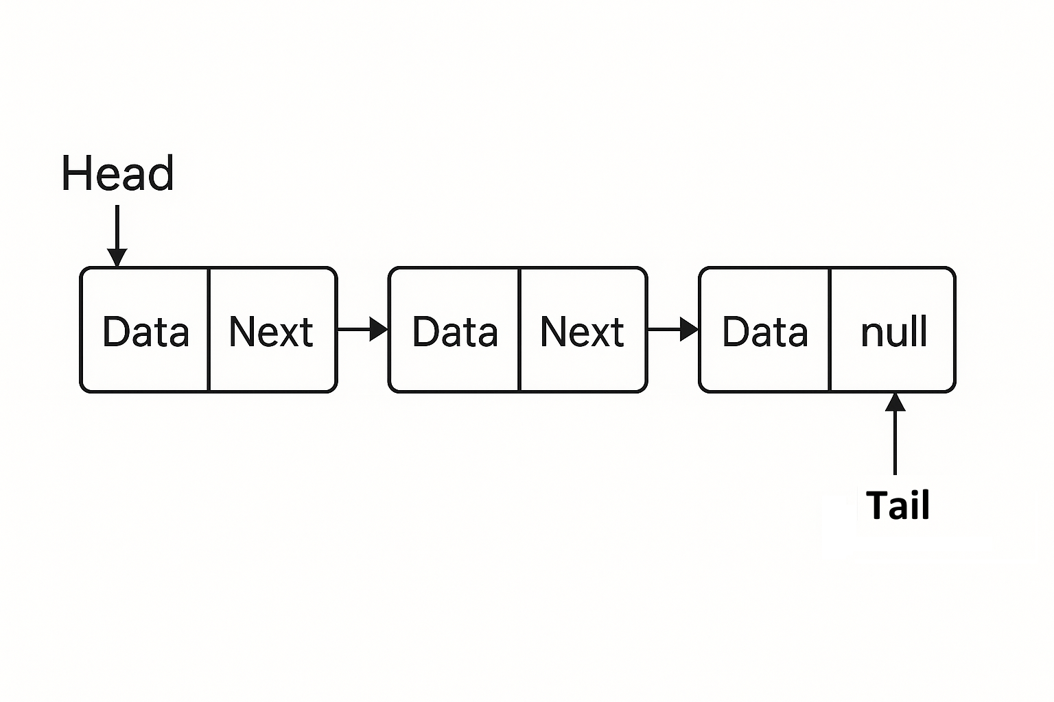 - 각 노드는 데이터와 다음 노드에 대한 참조(링크)를 가짐